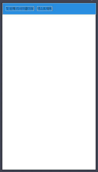 아래와 같이 두번째, 세 번째, 첫 번째 어답터 순으로 넣어주었다면 두 번째, 세 번째, 첫 번째 리사이클러뷰 순으로 보이게 될 것입니다.