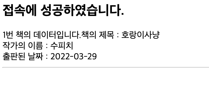 정상적으로 책의 목록이 출력되는 것을 볼 수 있습니다.