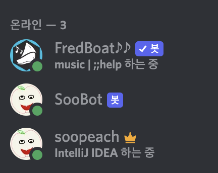 요런식으로 디스코드 서버에 봇이 추가된 것을 볼 수 있습니다.