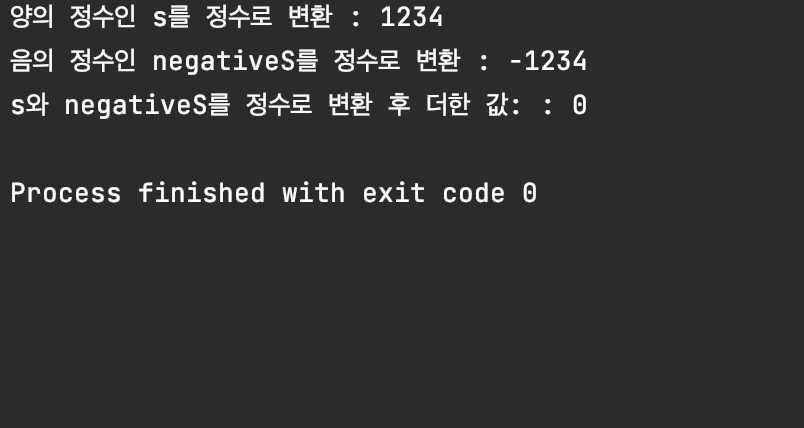 둘째 줄에는 "-1234"를 정수로 변환한 값인 -1234가 출력되었습니다.