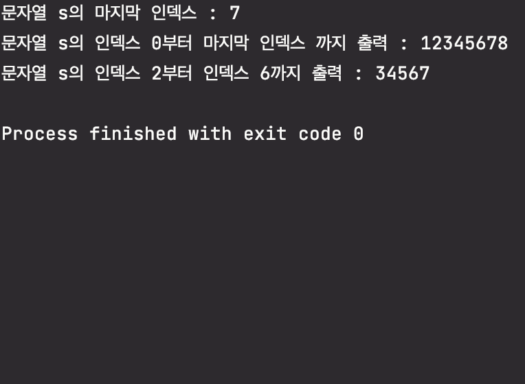 println("문자열 s의 마지막 인덱스 : ${s.lastIndex}")