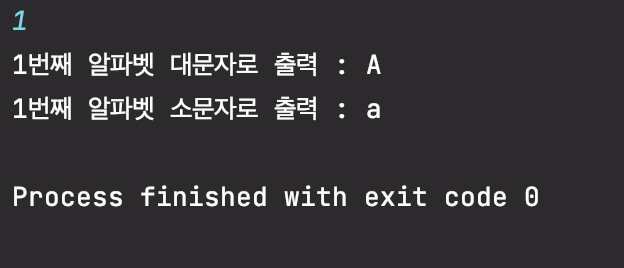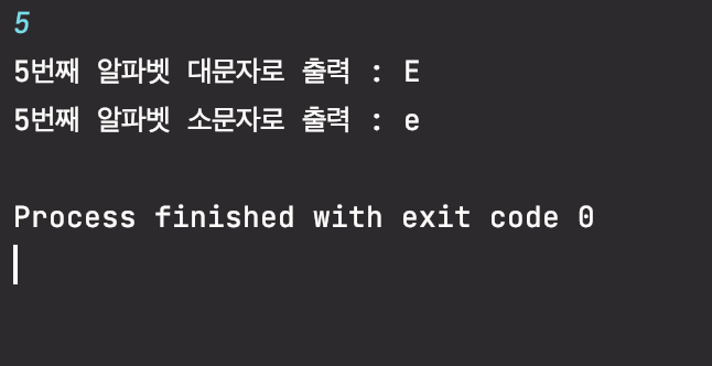 이것을 이용하여 정수값을 문자로 변환하여 n을 입력 받으면 n번째 대문자, 소문자를 출력하는 함수를 만들어 보았습니다.