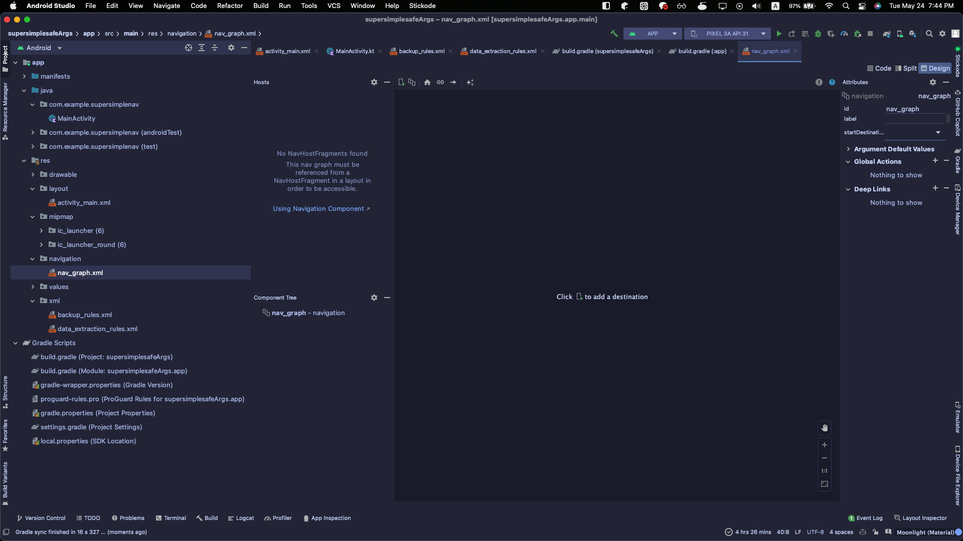 res - navigation 경로에 nav_graph.xml이 생성된 것을 확인할 수 있습니다.