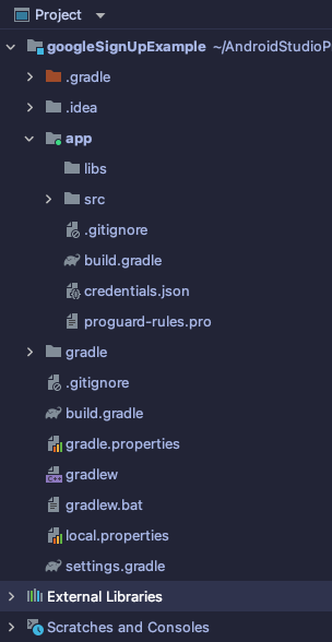 손쉽게 구글 계정의 정보를 받아올 수 있도록 안드로이드 스튜디오의 프로젝트와 구글 로그인을 연동해보도록 하겠습니다.