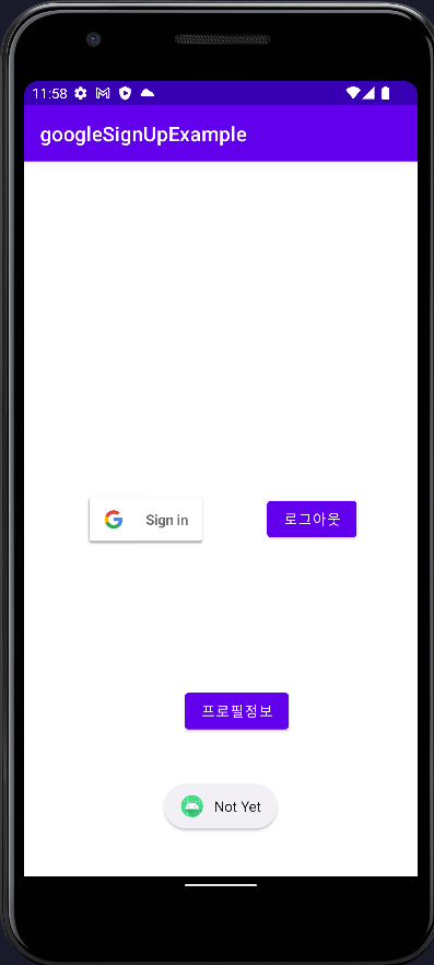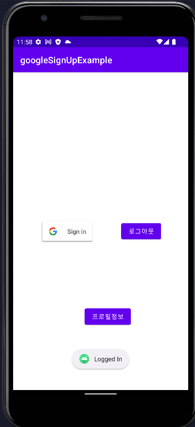 이제 앱을 실행하여 구글 로그인 버튼을 누르면