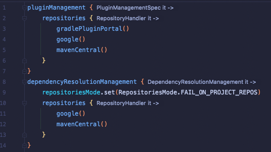 Gradle Sciprts - settings.gradle 파일에 Google의 Maven 저장소가 포함되어 있는지 확인합니다.