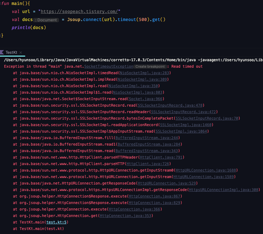val docs = Jsoup.connect(url).timeout(1000).get()