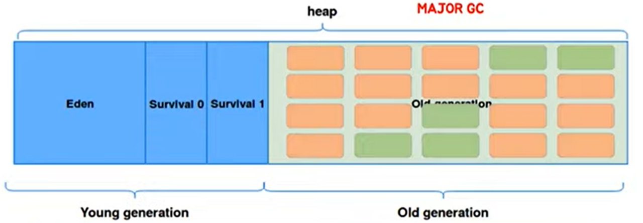 시간이 지나 Old 영역에 할당된 메모리가 허용치를 넘게되면, Old 영역에 있는 모든 객체들을 검사하여 참조되고 있지 않은 객체들을 한꺼번에 삭제하는 GC가 동작.