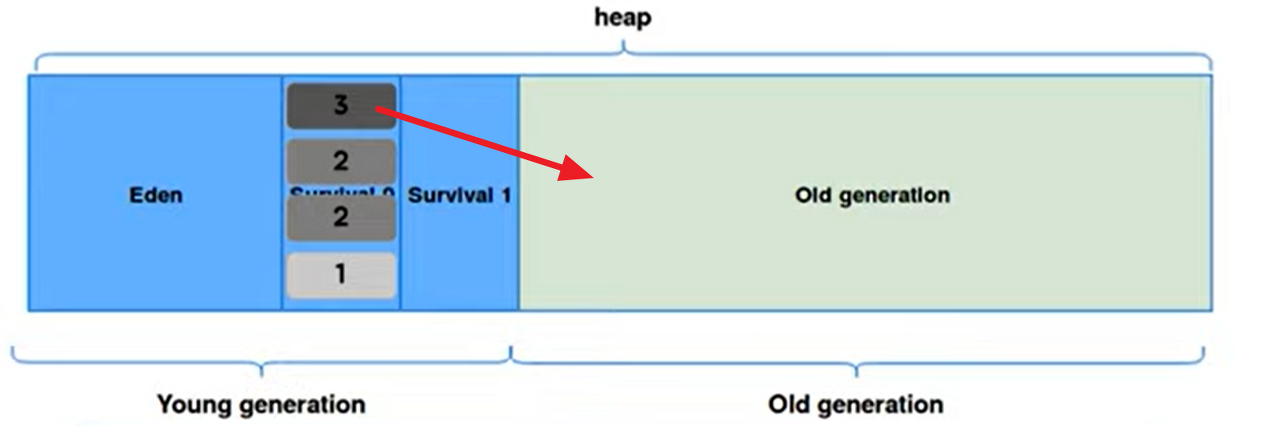 이때 JVM에서 설정해놓은 age-bit에 도달하게 되면 해당 객체는 오랫동안 쓰일 객체라고 판단하여 Old Generation 영역으로 이동.