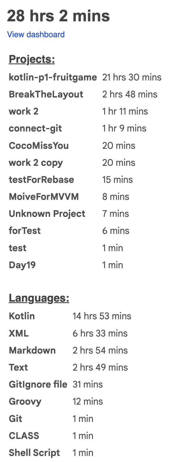 | 와카타임[WakaTime] 2022-08-08 until 2022-08-14 (0) | 2022.08.15 |