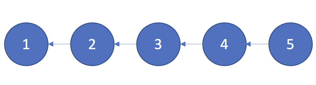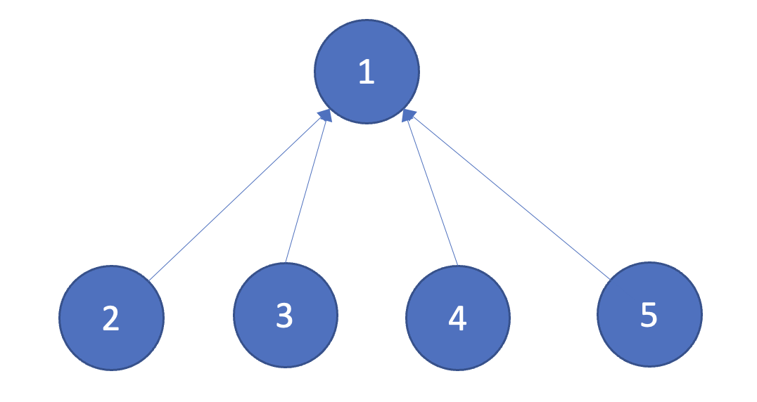 union연산이 순선대로 (4, 5),(3, 4),(2, 3),(1, 2)와 같이 주어졌을 때 차레대로 연산을 처리하게 된다면 아래와 같은 형태가 된다.