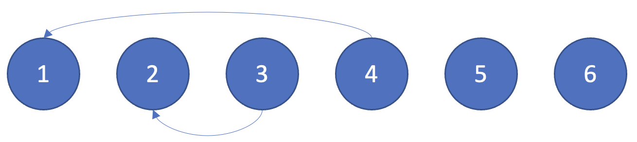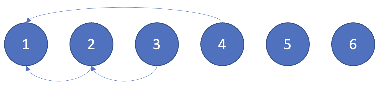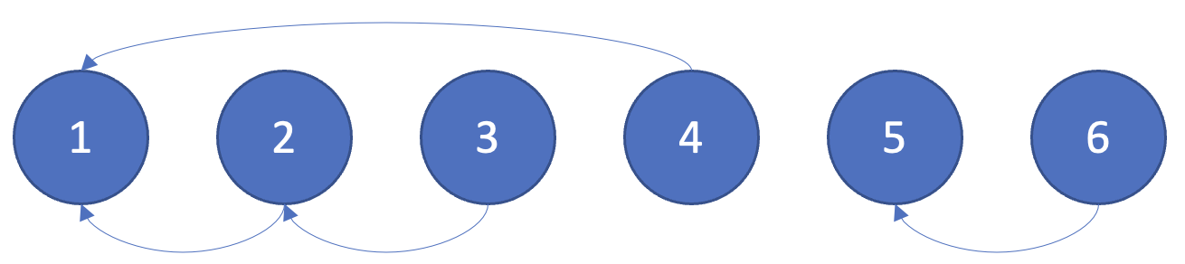 6개의 원소로 이루어진 {1, 2, 3, 4, 5, 6} 집합이 있고 union(1, 4), union(2, 3), union(2, 4), union(5, 6)이 있다고 가정을 해보자.