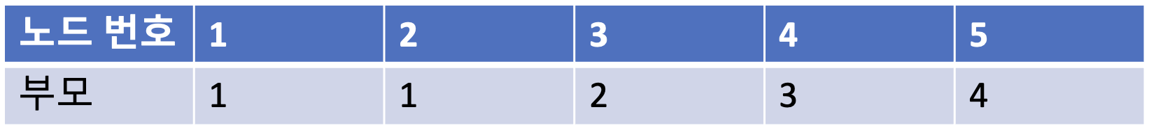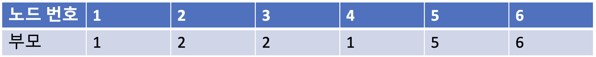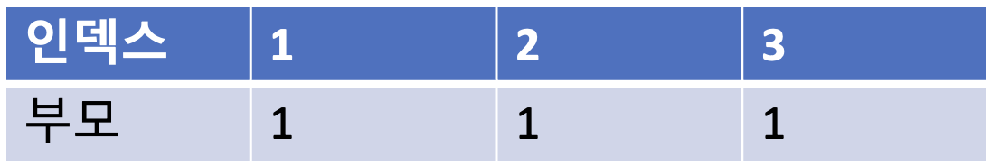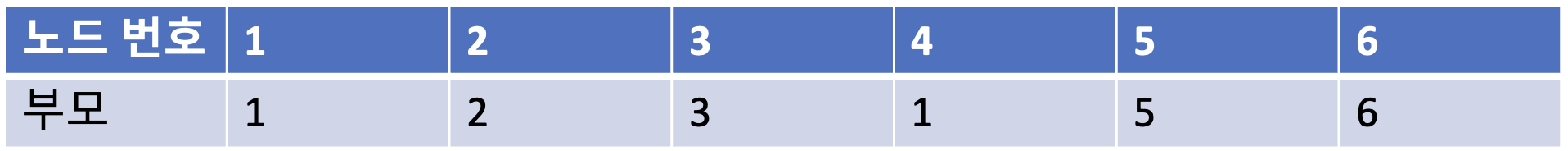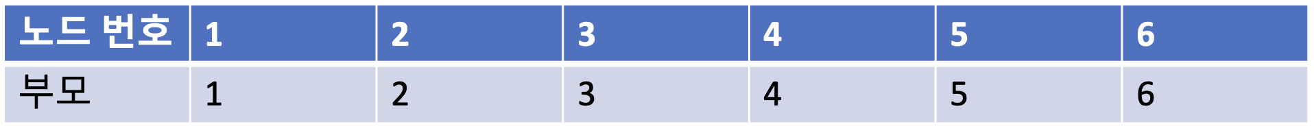 가장 먼저 모든 노드에 대하여 자기 자신을 부모로 설정하는 형태로 부모 테이블을 초기화 한다.