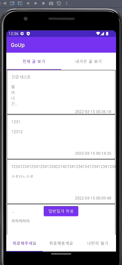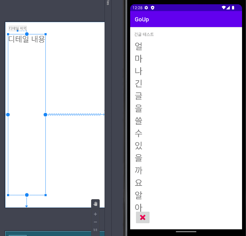 텍스트가 너무 길게 입력받으면 정해진 텍스트뷰의 길이를 초과하여 레이아웃 자체도 넘어가 버려서 그 이상의 내용은 볼 수가 없었습니다.