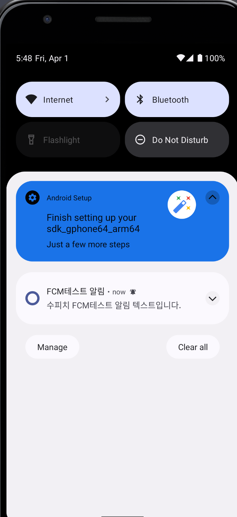 앱이 포어그라운드에 있으면 알림이 나타나지 않을 수 있기 때문에 앱을 종료한 후 메세지를 보내야합니다.